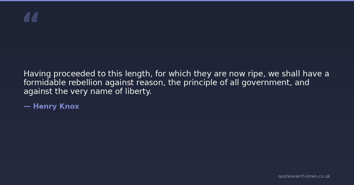 Having proceeded to this length, for which they are now ripe, we shall have a formidable rebellion against reason, the principle of all government, and against the very name of liberty.