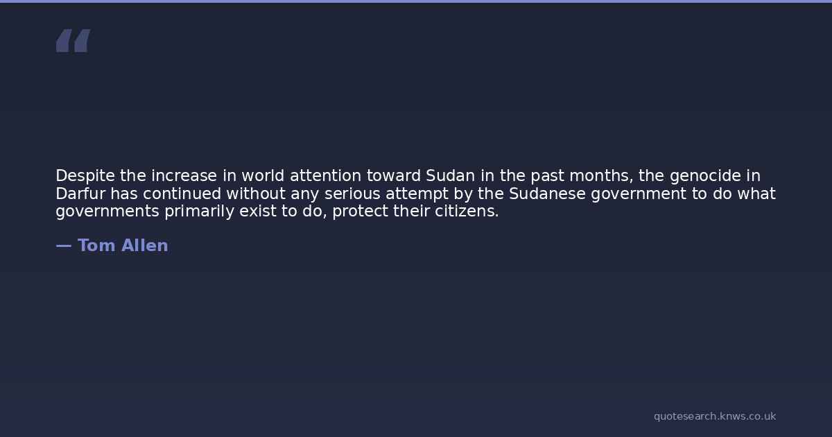 Despite the increase in world attention toward Sudan in the past months, the genocide in Darfur has continued without any serious attempt by the Sudanese government to do what governments primarily exist to do, protect their citizens.