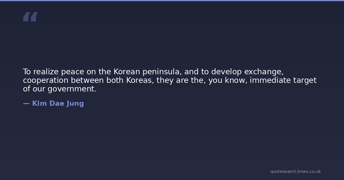 To realize peace on the Korean peninsula, and to develop exchange, cooperation between both Koreas, they are the, you know, immediate target of our government.