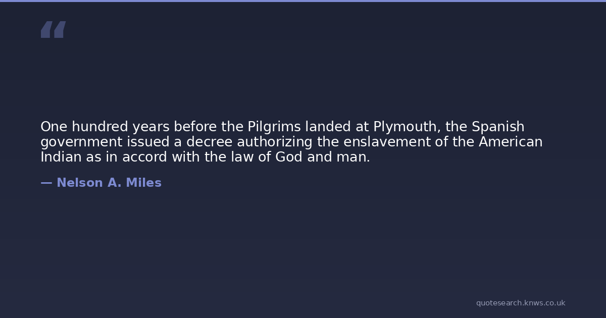 One hundred years before the Pilgrims landed at Plymouth, the Spanish government issued a decree authorizing the enslavement of the American Indian as in accord with the law of God and man.