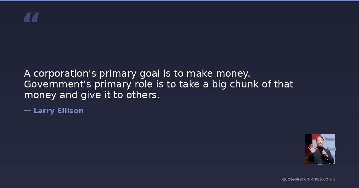 A corporation's primary goal is to make money. Government's primary role is to take a big chunk of that money and give it to others.