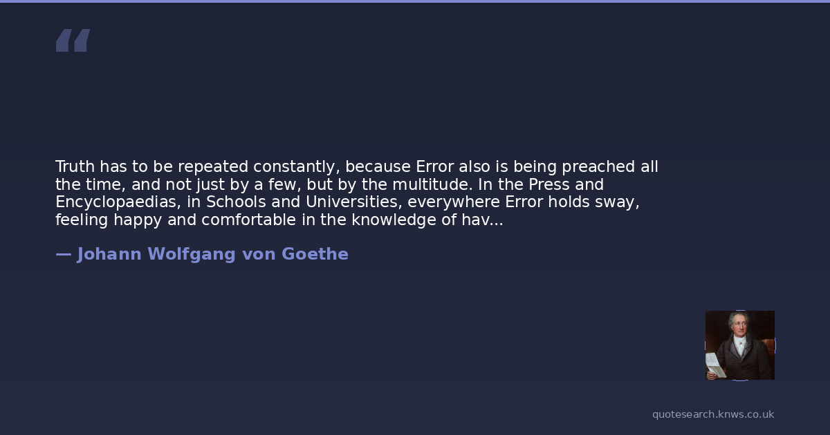 Truth has to be repeated constantly, because Error also is being preached all the time, and not just by a few, but by the multitude. In the Press and Encyclopaedias, in Schools and Universities, everywhere Error holds sway, feeling happy and comfortable in the knowledge of having Majority on its side.