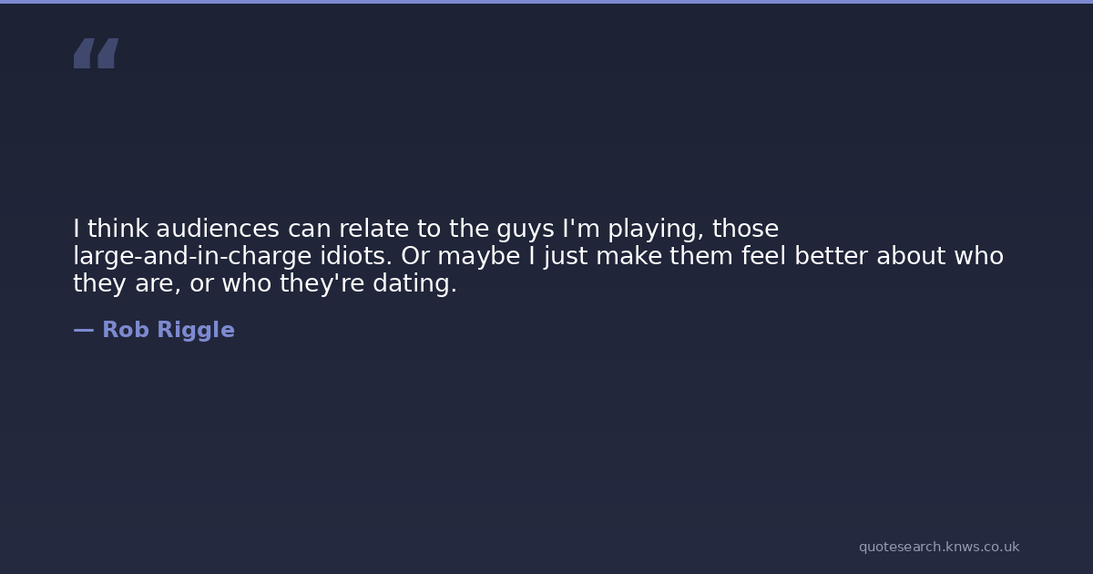I think audiences can relate to the guys I'm playing, those large-and-in-charge idiots. Or maybe I just make them feel better about who they are, or who they're dating.