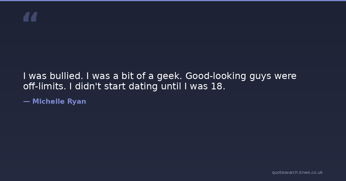 I was bullied. I was a bit of a geek. Good-looking guys were off-limits. I didn't start dating until I was 18. Start Good-Looking Geek Download Image Share on X Share on Facebook Copy Link