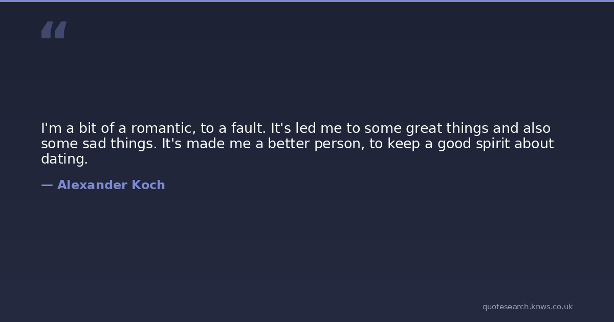 I'm a bit of a romantic, to a fault. It's led me to some great things and also some sad things. It's made me a better person, to keep a good spirit about dating.