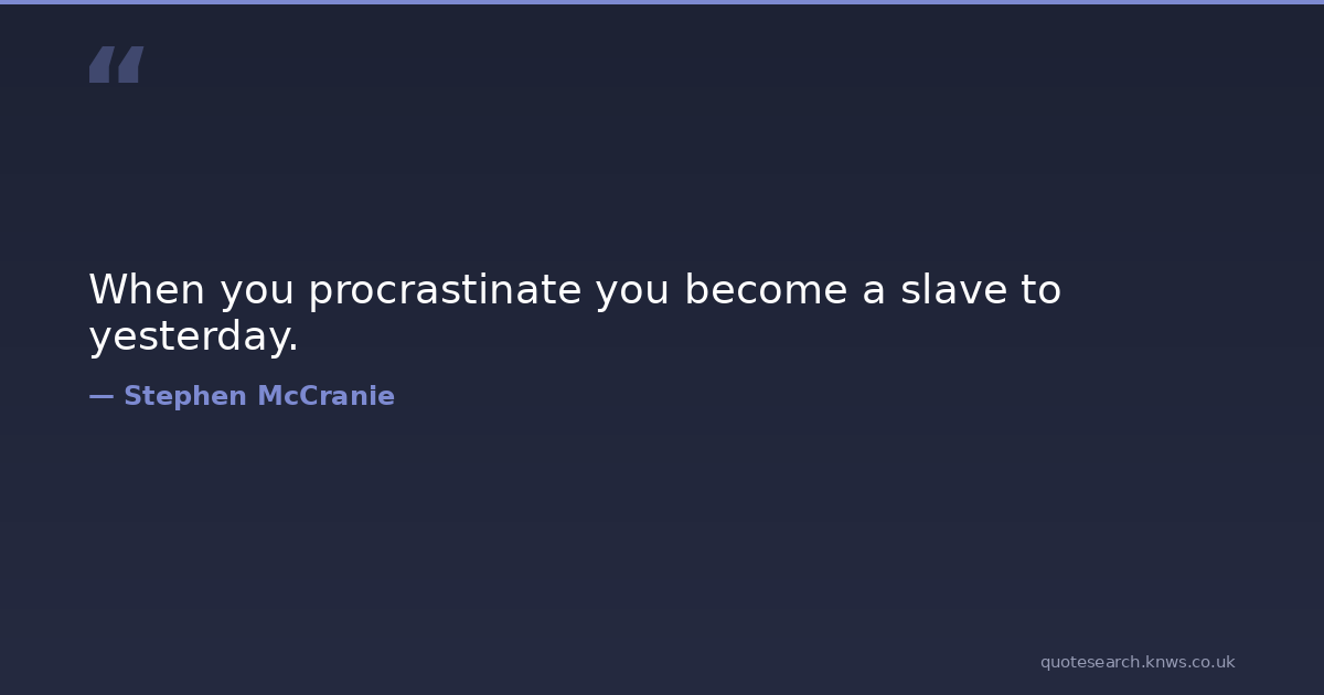 When you procrastinate you become a slave to yesterday. truth Download Image Share on X Share on Facebook Copy Link