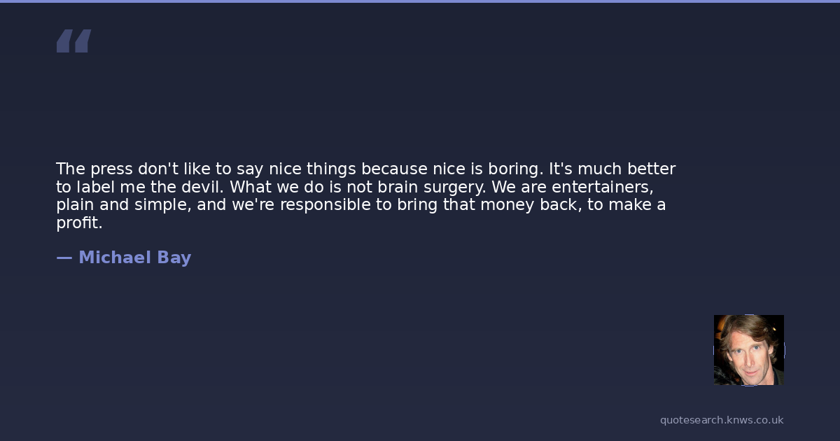 The press don't like to say nice things because nice is boring. It's much better to label me the devil. What we do is not brain surgery. We are entertainers, plain and simple, and we're responsible to bring that money back, to make a profit.