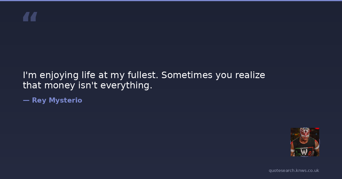 I'm enjoying life at my fullest. Sometimes you realize that money isn't everything.