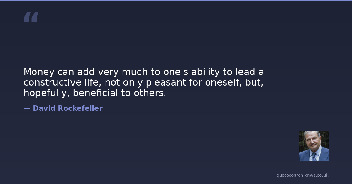 Money can add very much to one's ability to lead a constructive life, not only pleasant for oneself, but, hopefully, beneficial to others.