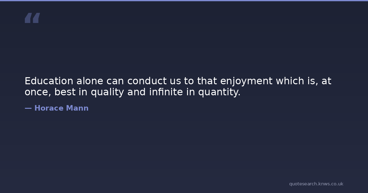 Education alone can conduct us to that enjoyment which is, at once, best in quality and infinite in quantity.