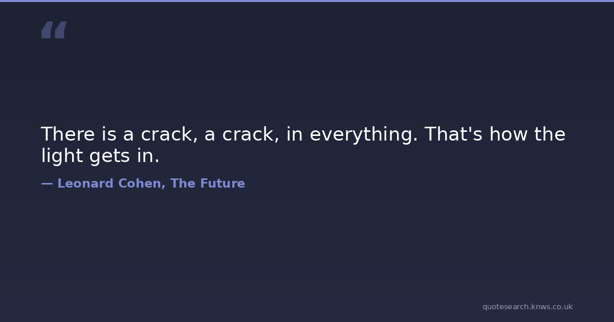There is a crack, a crack, in everything. That's how the light gets in. lyrics music poetry Download Image Share on X Share on Facebook Copy Link