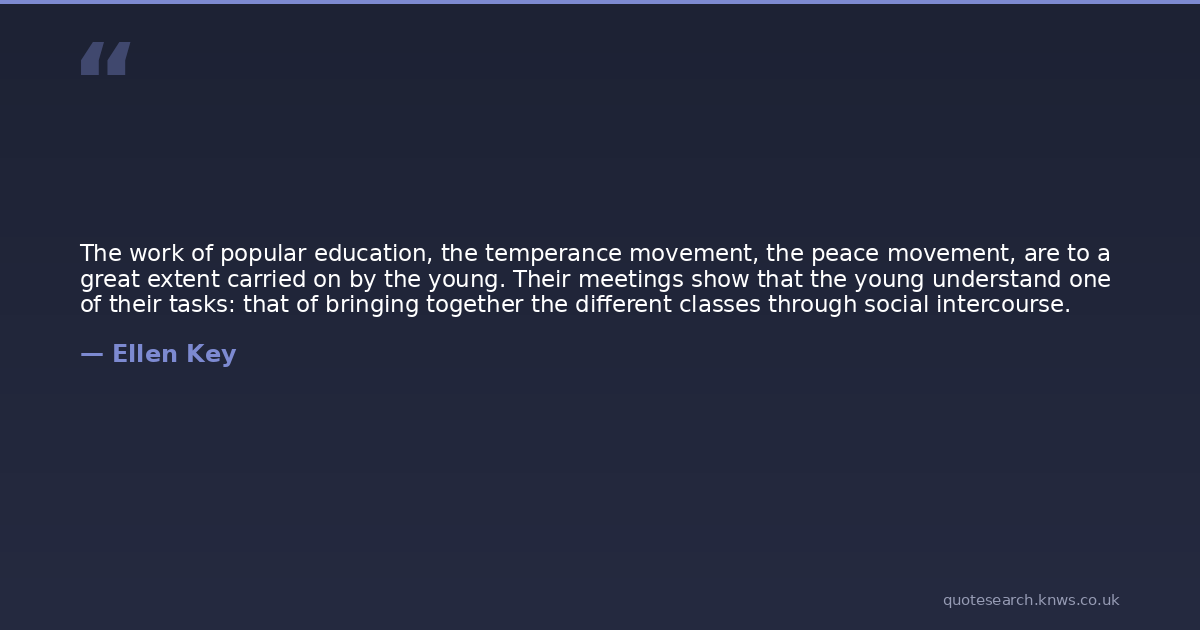 The work of popular education, the temperance movement, the peace movement, are to a great extent carried on by the young. Their meetings show that the young understand one of their tasks: that of bringing together the different classes through social intercourse.