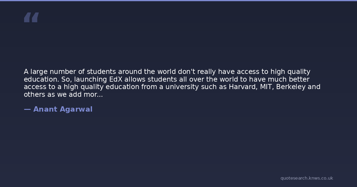A large number of students around the world don't really have access to high quality education. So, launching EdX allows students all over the world to have much better access to a high quality education from a university such as Harvard, MIT, Berkeley and others as we add more universities.