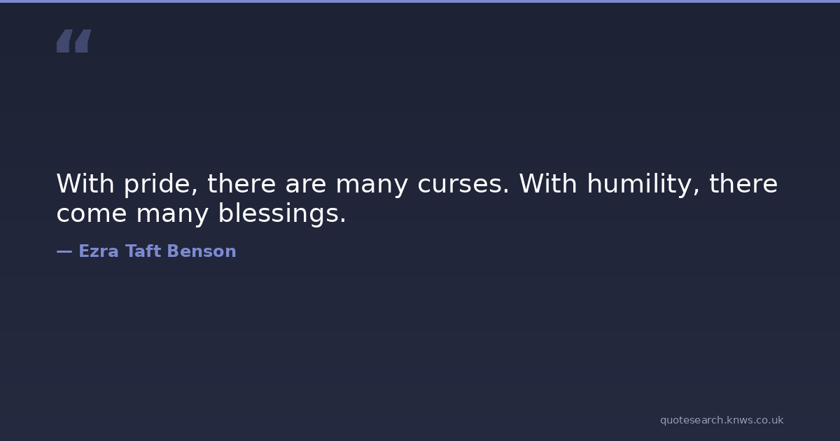 With pride, there are many curses. With humility, there come many blessings. Blessings Humility Pride Download Image Share on X Share on Facebook Copy Link