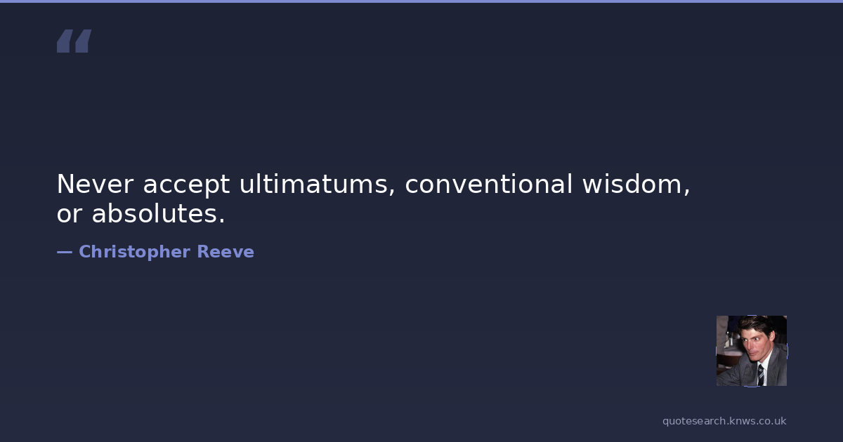Never accept ultimatums, conventional wisdom, or absolutes.