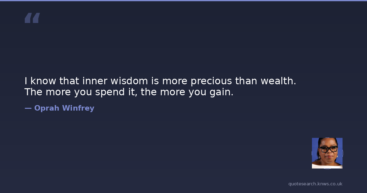 I know that inner wisdom is more precious than wealth. The more you spend it, the more you gain.