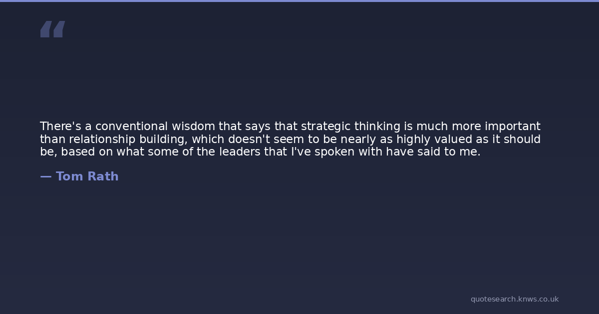 There's a conventional wisdom that says that strategic thinking is much more important than relationship building, which doesn't seem to be nearly as highly valued as it should be, based on what some of the leaders that I've spoken with have said to me.