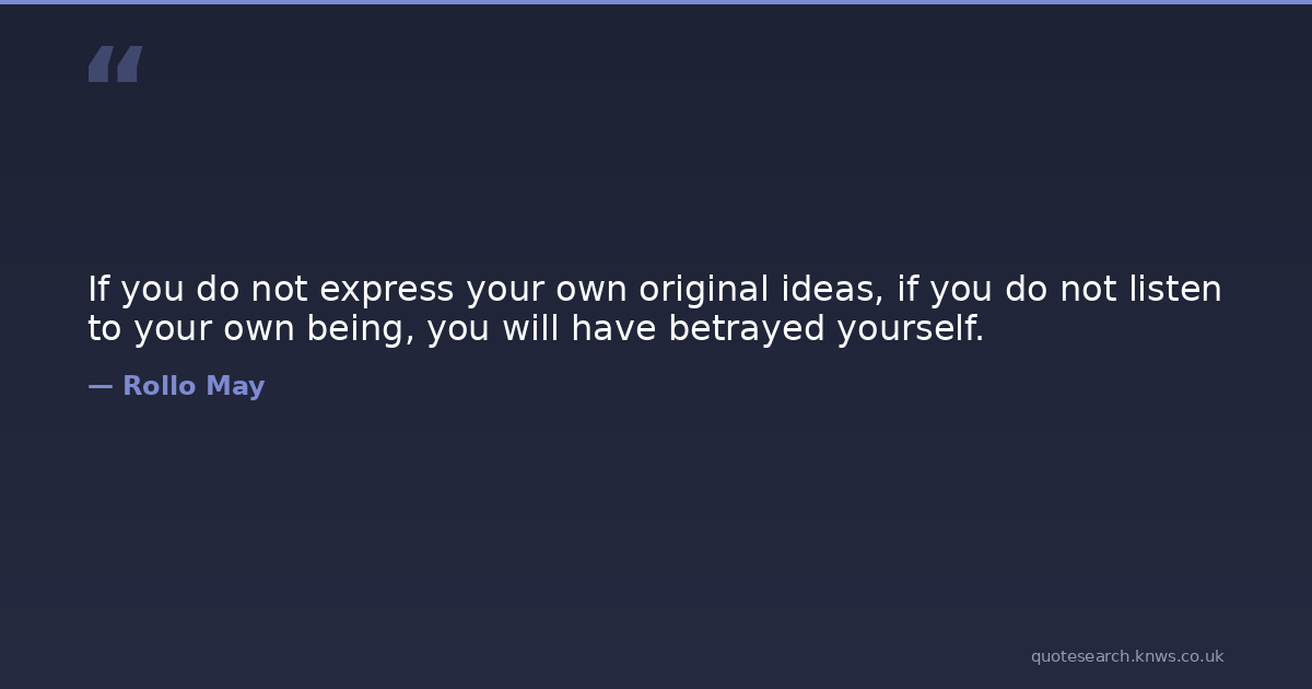 If you do not express your own original ideas, if you do not listen to your own being, you will have betrayed yourself.