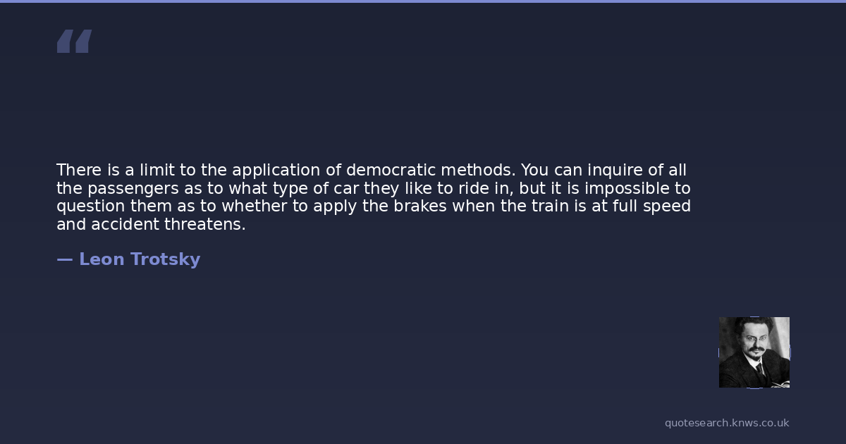 There is a limit to the application of democratic methods. You can inquire of all the passengers as to what type of car they like to ride in, but it is impossible to question them as to whether to apply the brakes when the train is at full speed and accident threatens.