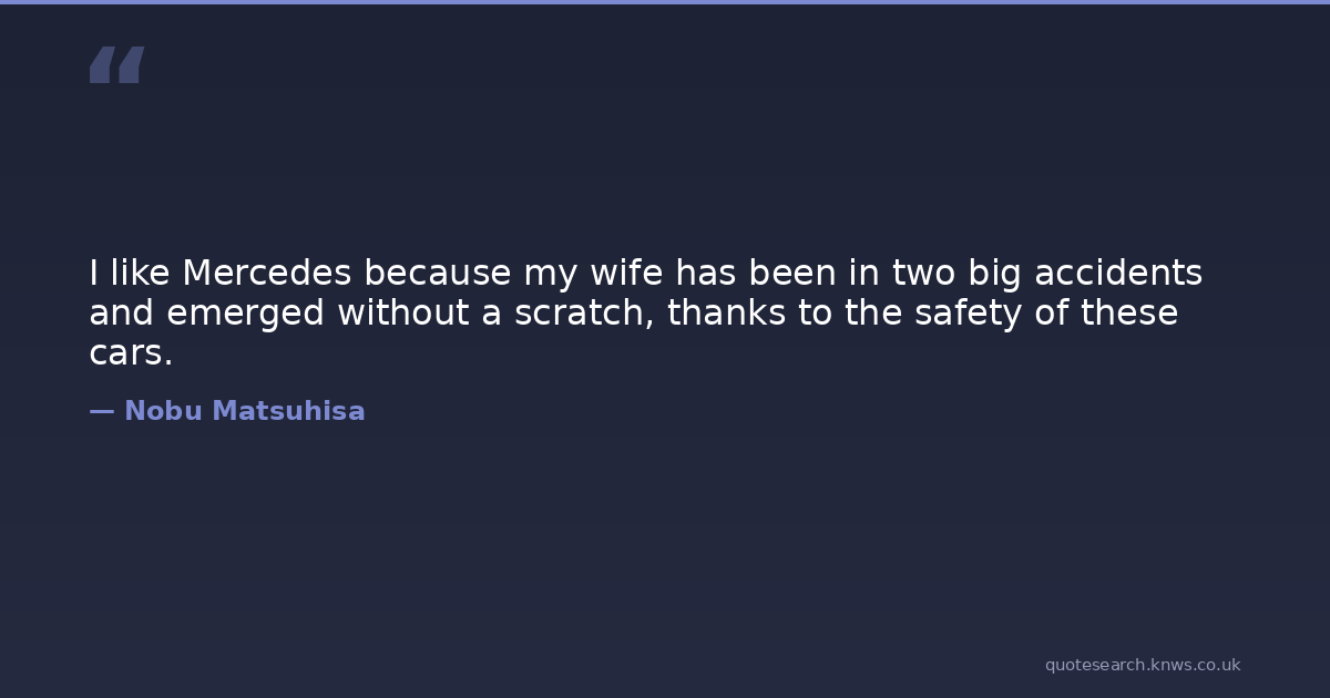 I like Mercedes because my wife has been in two big accidents and emerged without a scratch, thanks to the safety of these cars.