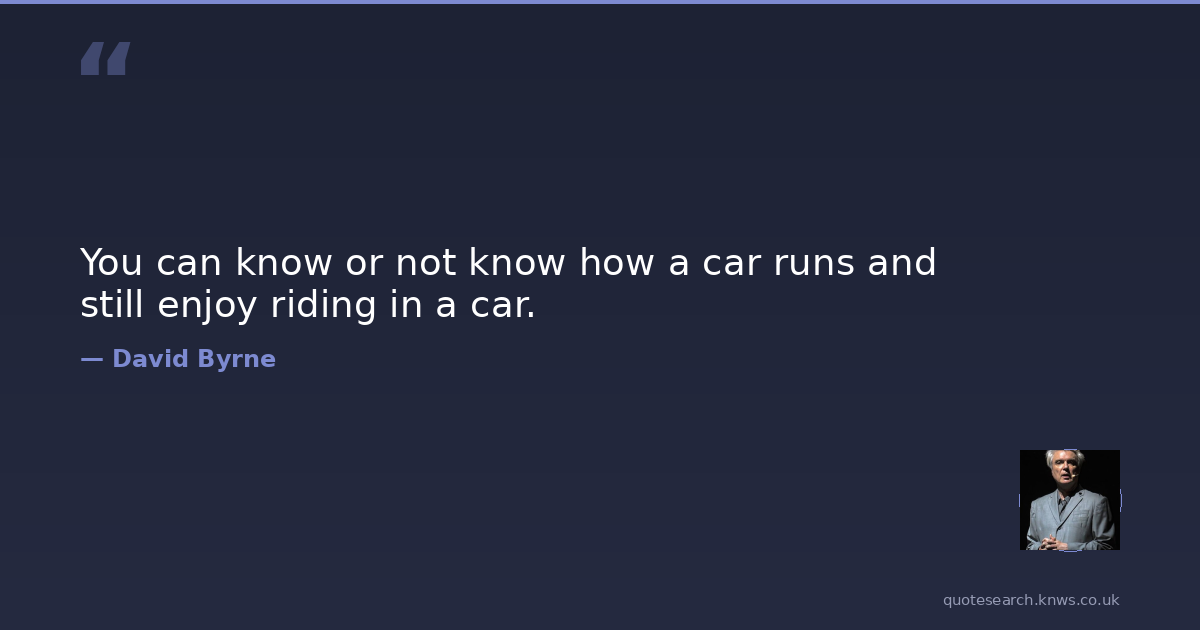 You can know or not know how a car runs and still enjoy riding in a car.