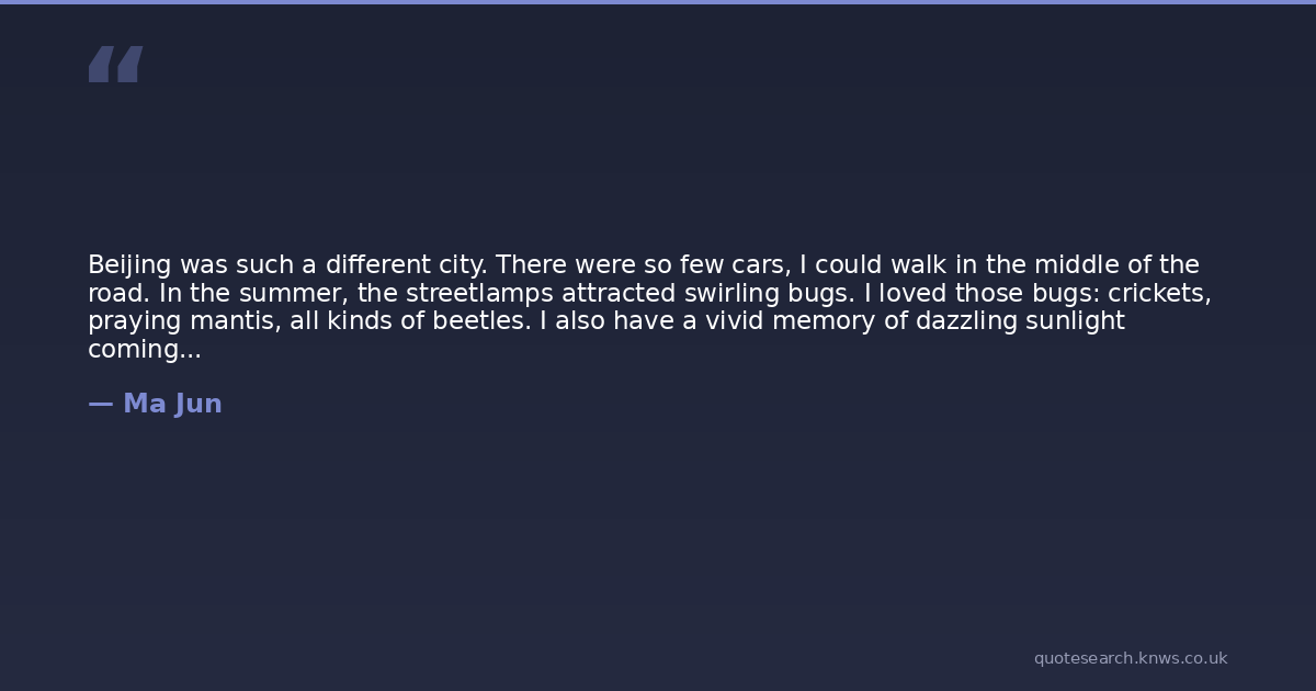 Beijing was such a different city. There were so few cars, I could walk in the middle of the road. In the summer, the streetlamps attracted swirling bugs. I loved those bugs: crickets, praying mantis, all kinds of beetles. I also have a vivid memory of dazzling sunlight coming out of the sky.
