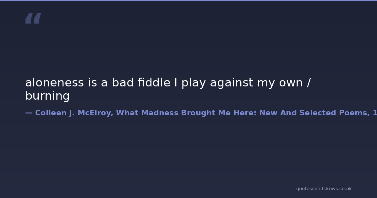 aloneness is a bad fiddle I play against my own / burning alone loneliness music Download Image Share on X Share on Facebook Copy Link