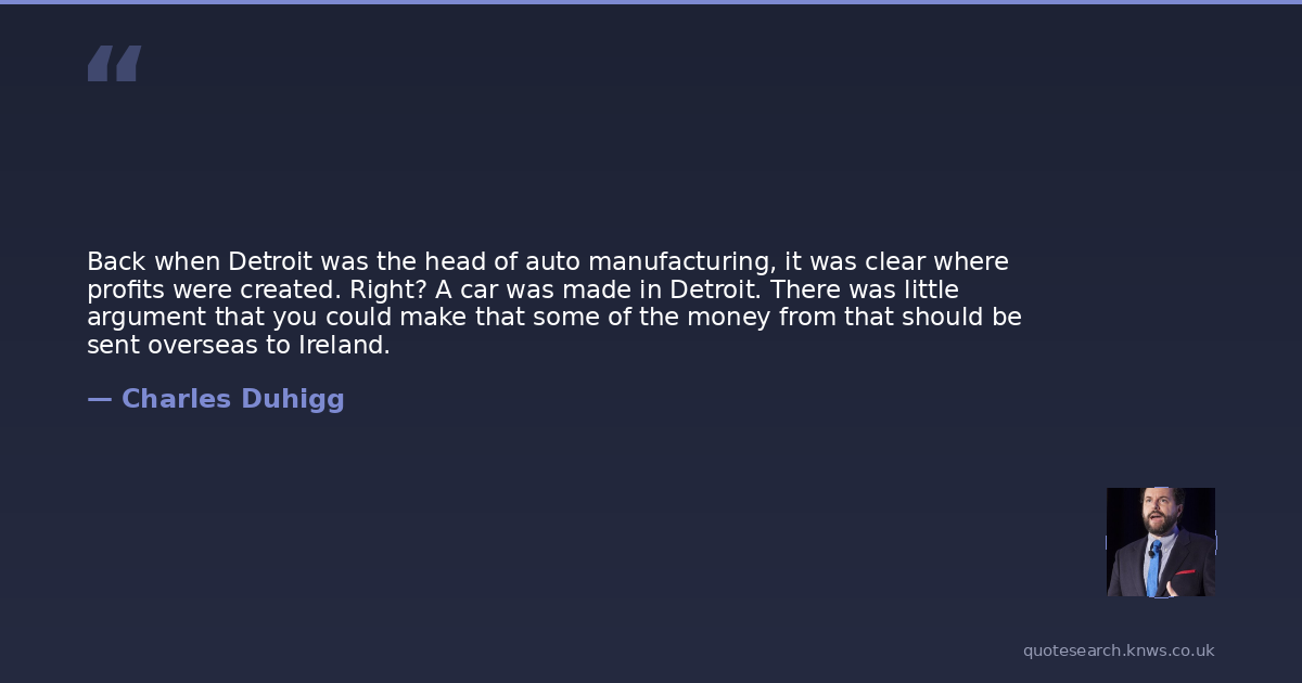 Back when Detroit was the head of auto manufacturing, it was clear where profits were created. Right? A car was made in Detroit. There was little argument that you could make that some of the money from that should be sent overseas to Ireland.