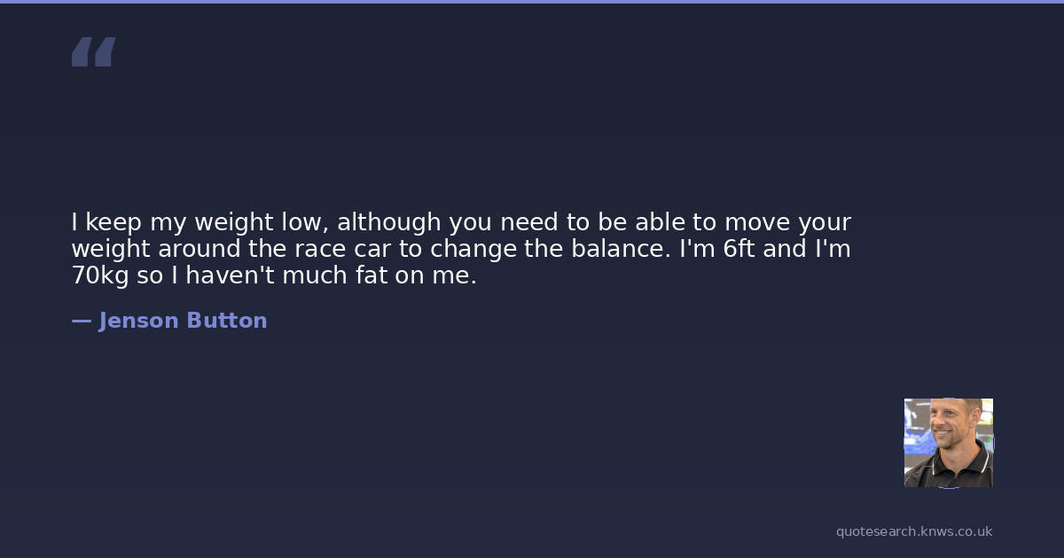 I keep my weight low, although you need to be able to move your weight around the race car to change the balance. I'm 6ft and I'm 70kg so I haven't much fat on me.
