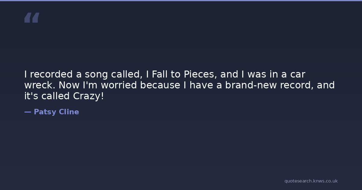 I recorded a song called, I Fall to Pieces, and I was in a car wreck. Now I'm worried because I have a brand-new record, and it's called Crazy!