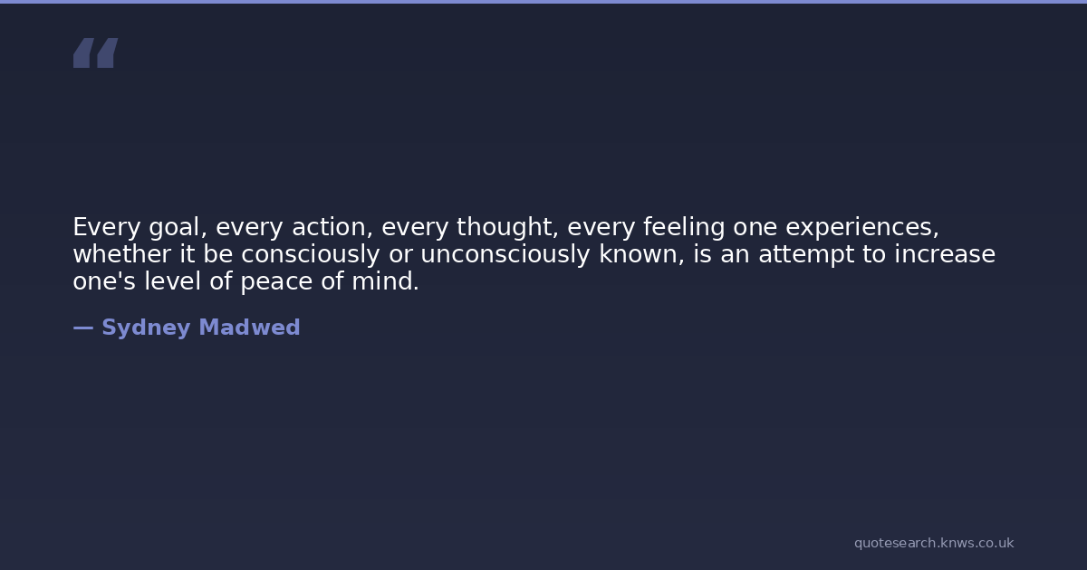 Every goal, every action, every thought, every feeling one experiences, whether it be consciously or unconsciously known, is an attempt to increase one's level of peace of mind.
