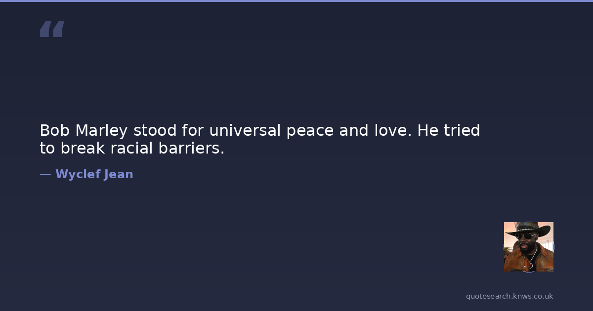 Bob Marley stood for universal peace and love. He tried to break racial barriers.