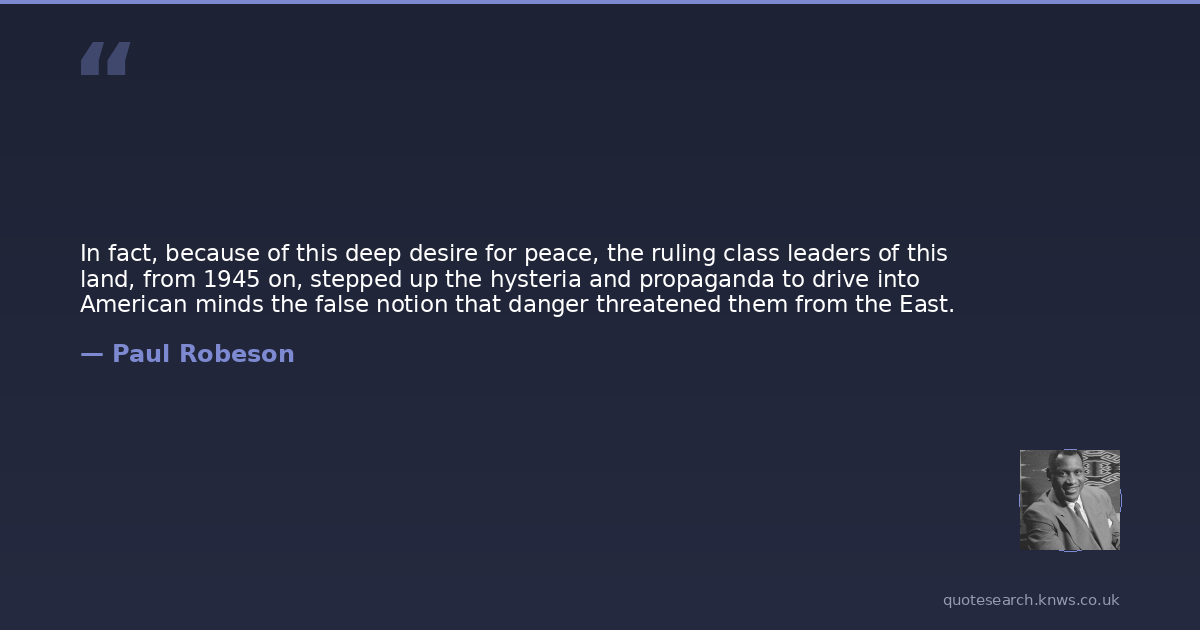 In fact, because of this deep desire for peace, the ruling class leaders of this land, from 1945 on, stepped up the hysteria and propaganda to drive into American minds the false notion that danger threatened them from the East.