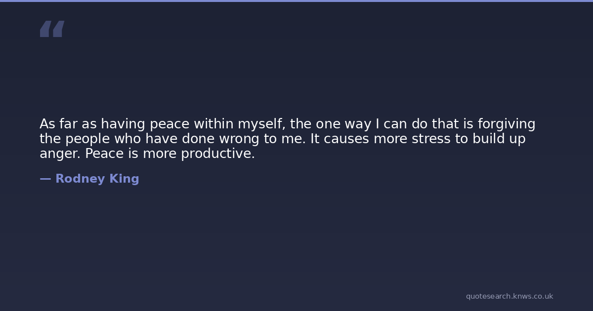 As far as having peace within myself, the one way I can do that is forgiving the people who have done wrong to me. It causes more stress to build up anger. Peace is more productive.