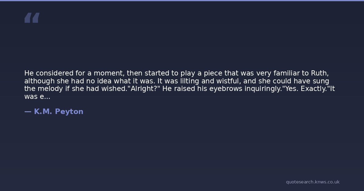 He considered for a moment, then started to play a piece that was very familiar to Ruth, although she had no idea what it was. It was lilting and wistful, and she could have sung the melody if she had wished."Alright?" He raised his eyebrows inquiringly."Yes. Exactly."It was effortless and perfect, and he played it through to the end, closing with the softest and most delicate chords, which hung and faded in the quiet hall like the grains of dust raining through the evening light. Ruth was touched. It was all she had wanted. He did not move until there was complete silence again, then he closed the lid without saying anything, and stood up, shoving back the chair. ... "What was that piece?" "A Brahms waltz.""Hasn't it got a name?" she wanted it to remember."Number fifteen. Opus thirty-nine." It hadn't sounded like numbers to Ruth.