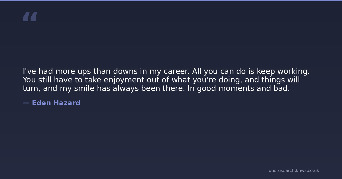 I've had more ups than downs in my career. All you can do is keep working. You still have to take enjoyment out of what you're doing, and things will turn, and my smile has always been there. In good moments and bad.