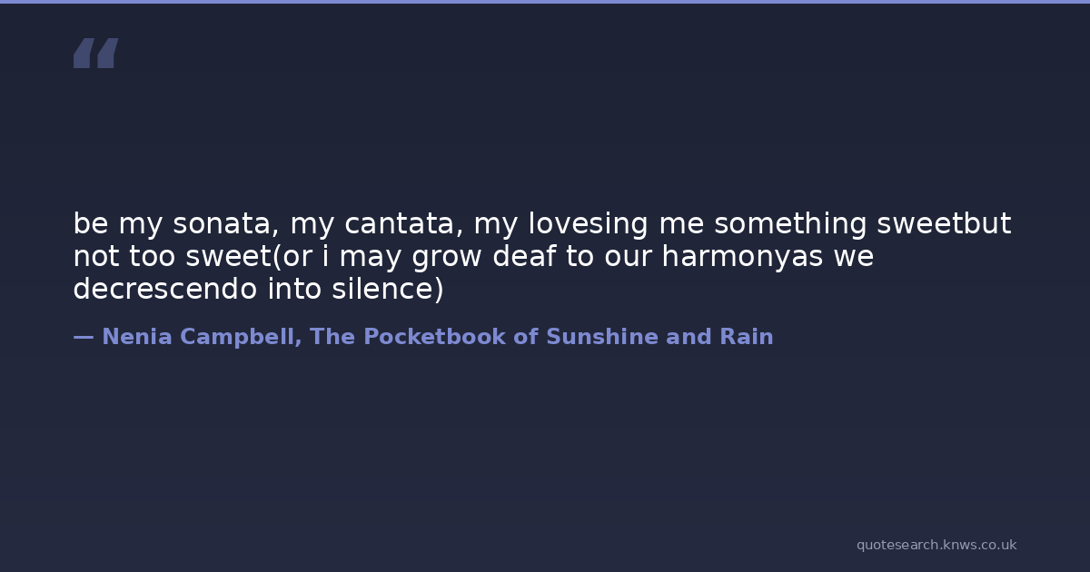 be my sonata, my cantata, my lovesing me something sweetbut not too sweet(or i may grow deaf to our harmonyas we decrescendo into silence)