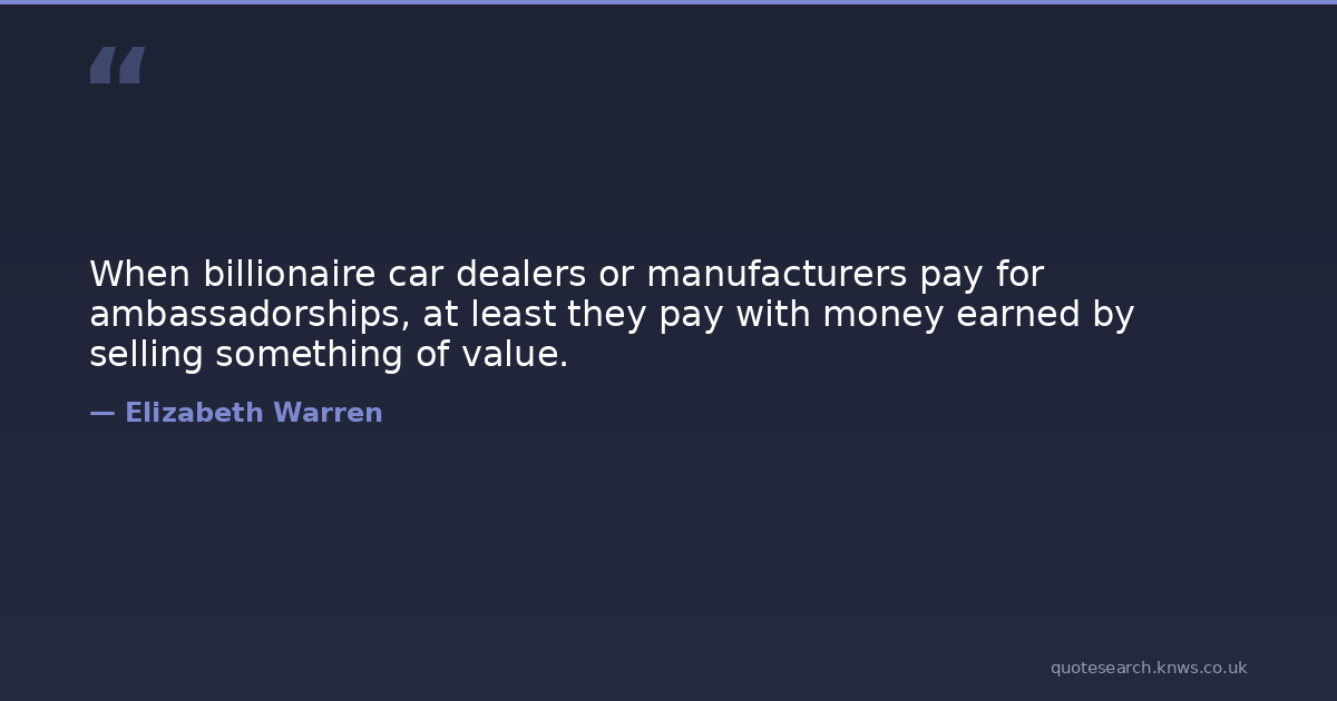 When billionaire car dealers or manufacturers pay for ambassadorships, at least they pay with money earned by selling something of value.