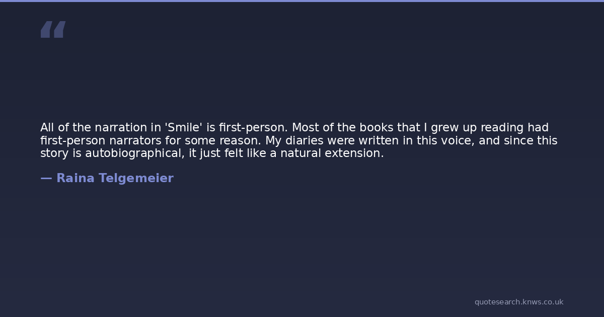 All of the narration in 'Smile' is first-person. Most of the books that I grew up reading had first-person narrators for some reason. My diaries were written in this voice, and since this story is autobiographical, it just felt like a natural extension.