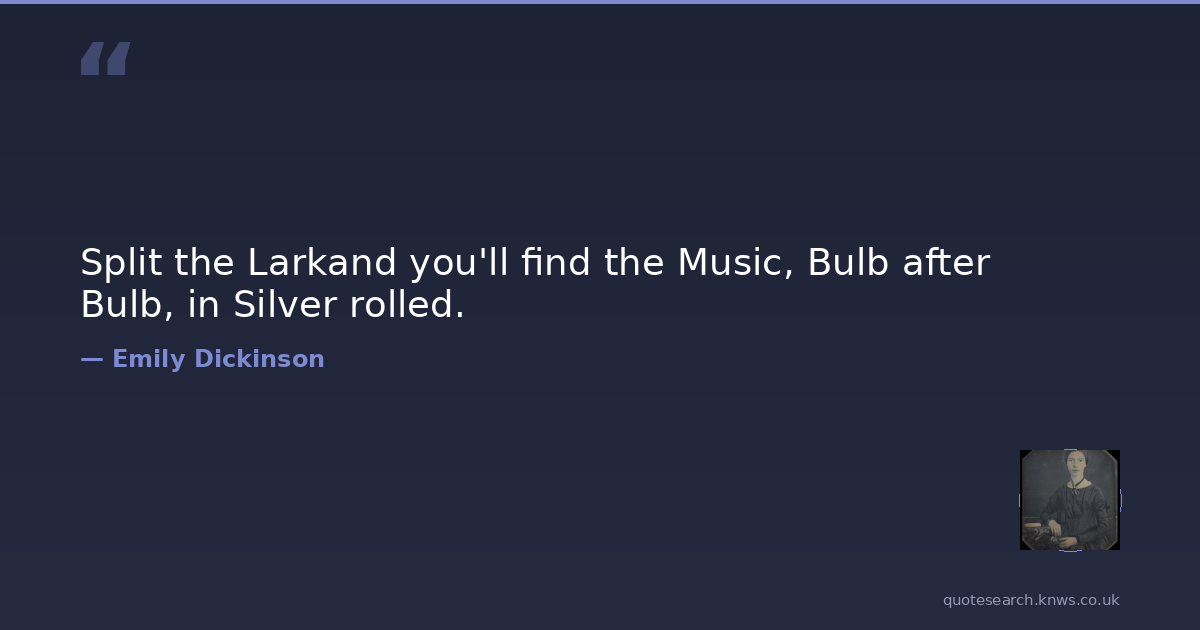 Split the Larkand you'll find the Music, Bulb after Bulb, in Silver rolled.