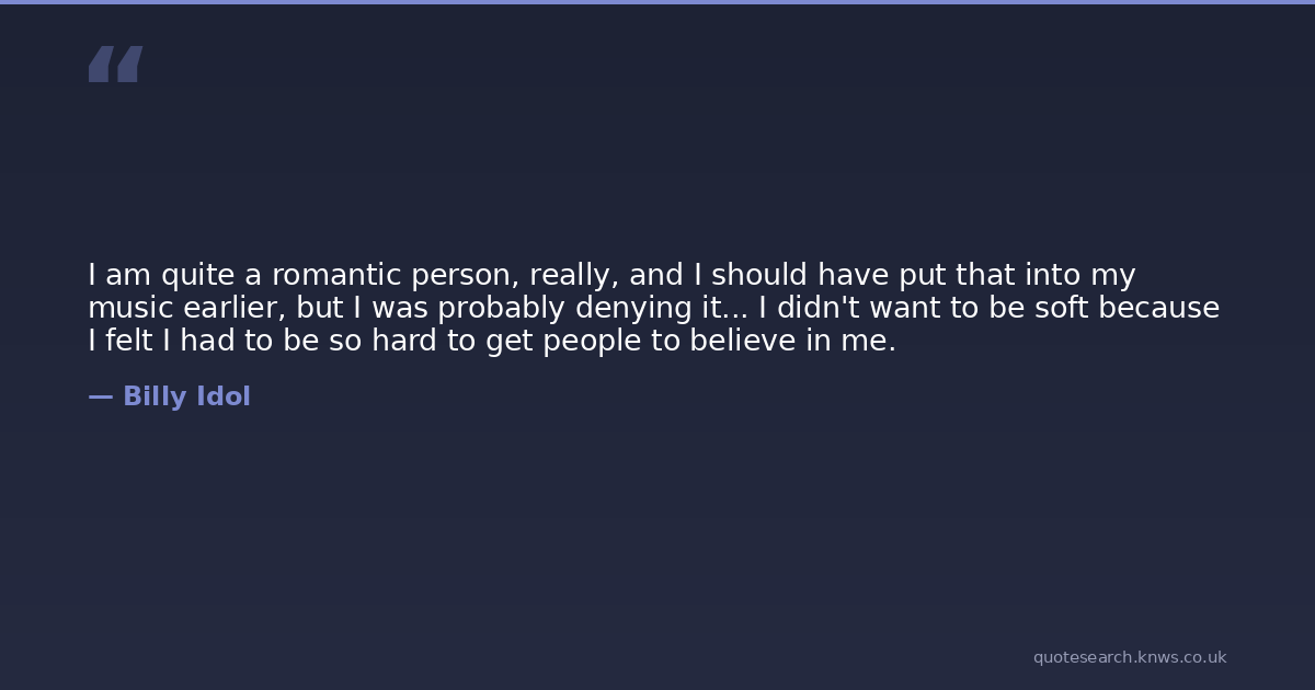I am quite a romantic person, really, and I should have put that into my music earlier, but I was probably denying it... I didn't want to be soft because I felt I had to be so hard to get people to believe in me.