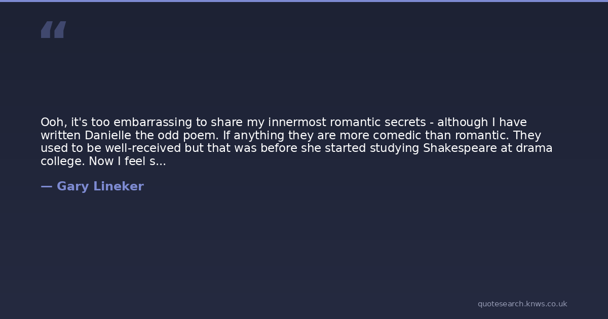Ooh, it's too embarrassing to share my innermost romantic secrets - although I have written Danielle the odd poem. If anything they are more comedic than romantic. They used to be well-received but that was before she started studying Shakespeare at drama college. Now I feel so inept.