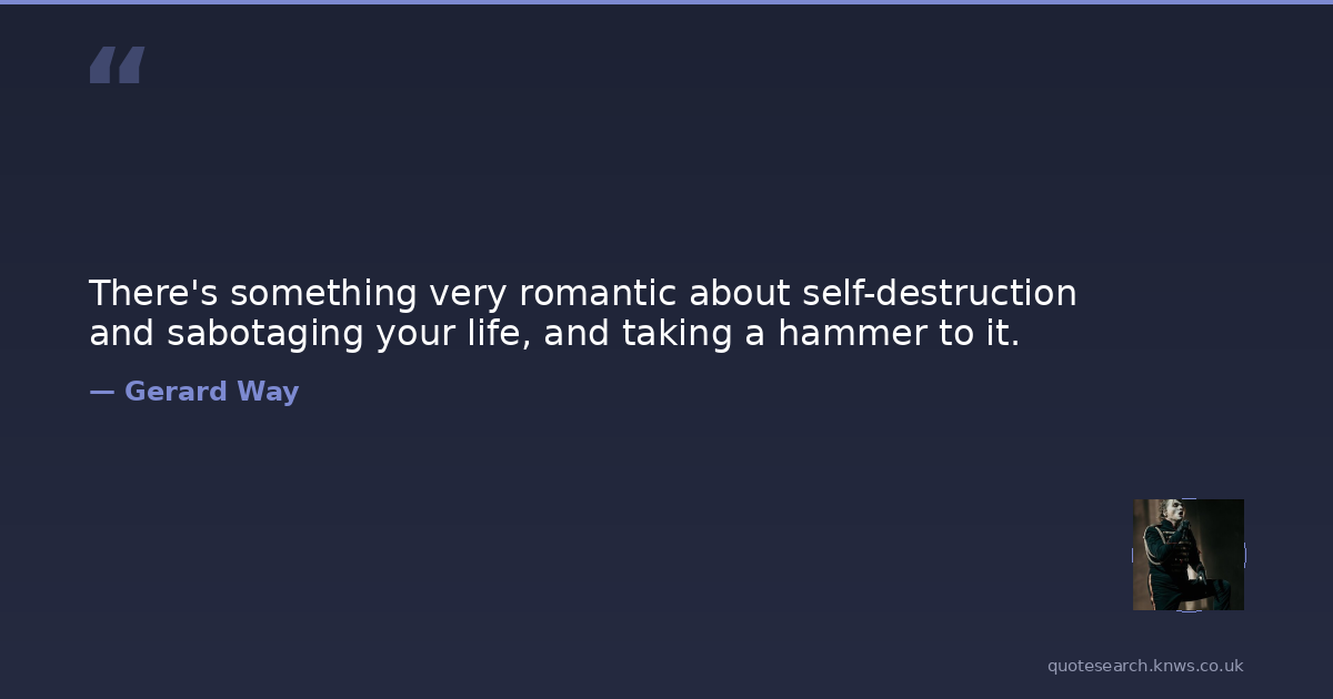 There's something very romantic about self-destruction and sabotaging your life, and taking a hammer to it.