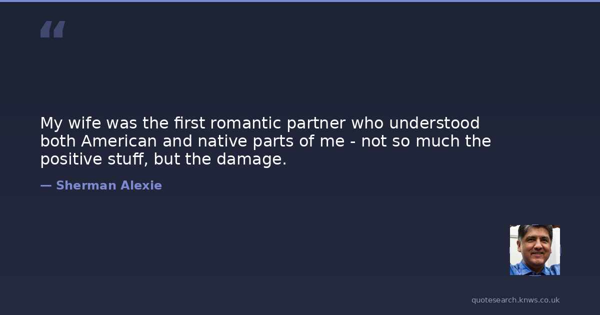 My wife was the first romantic partner who understood both American and native parts of me - not so much the positive stuff, but the damage.