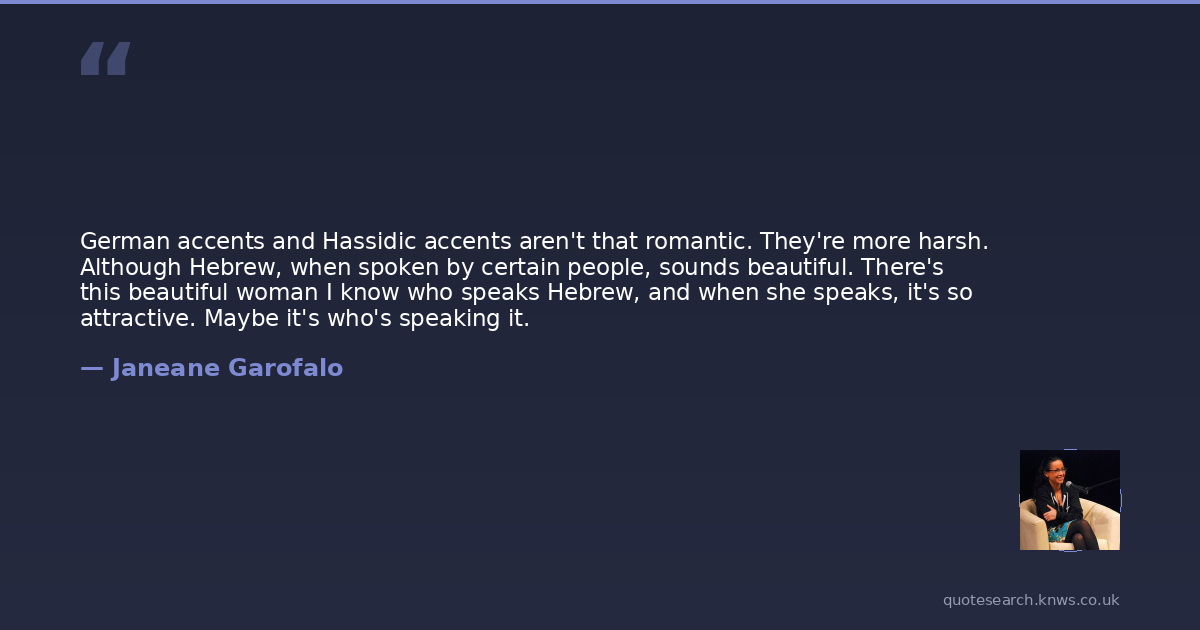 German accents and Hassidic accents aren't that romantic. They're more harsh. Although Hebrew, when spoken by certain people, sounds beautiful. There's this beautiful woman I know who speaks Hebrew, and when she speaks, it's so attractive. Maybe it's who's speaking it.