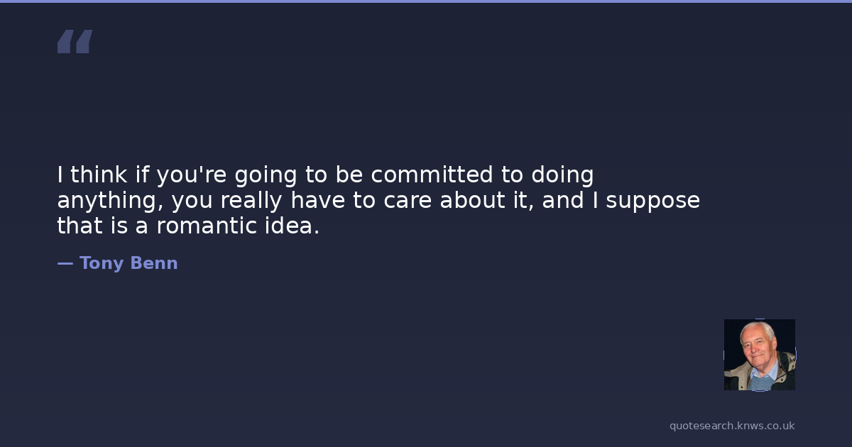 I think if you're going to be committed to doing anything, you really have to care about it, and I suppose that is a romantic idea.