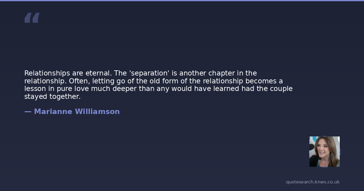 Relationships are eternal. The 'separation' is another chapter in the relationship. Often, letting go of the old form of the relationship becomes a lesson in pure love much deeper than any would have learned had the couple stayed together.