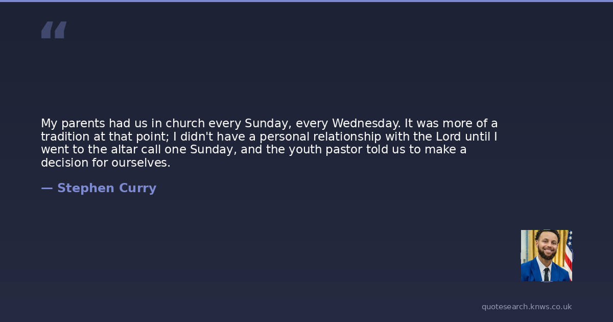 My parents had us in church every Sunday, every Wednesday. It was more of a tradition at that point; I didn't have a personal relationship with the Lord until I went to the altar call one Sunday, and the youth pastor told us to make a decision for ourselves.