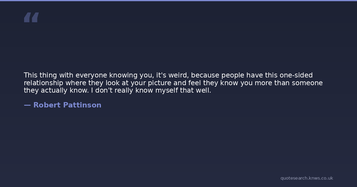 This thing with everyone knowing you, it's weird, because people have this one-sided relationship where they look at your picture and feel they know you more than someone they actually know. I don't really know myself that well.
