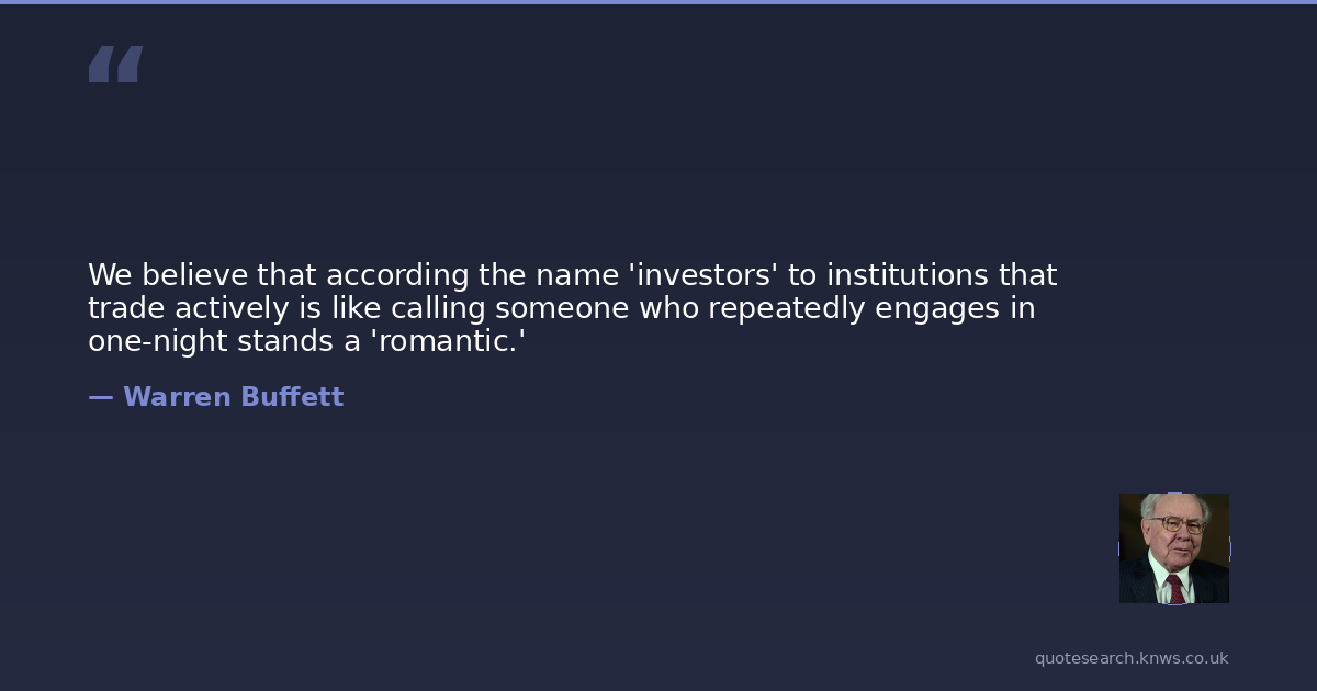 We believe that according the name 'investors' to institutions that trade actively is like calling someone who repeatedly engages in one-night stands a 'romantic.'